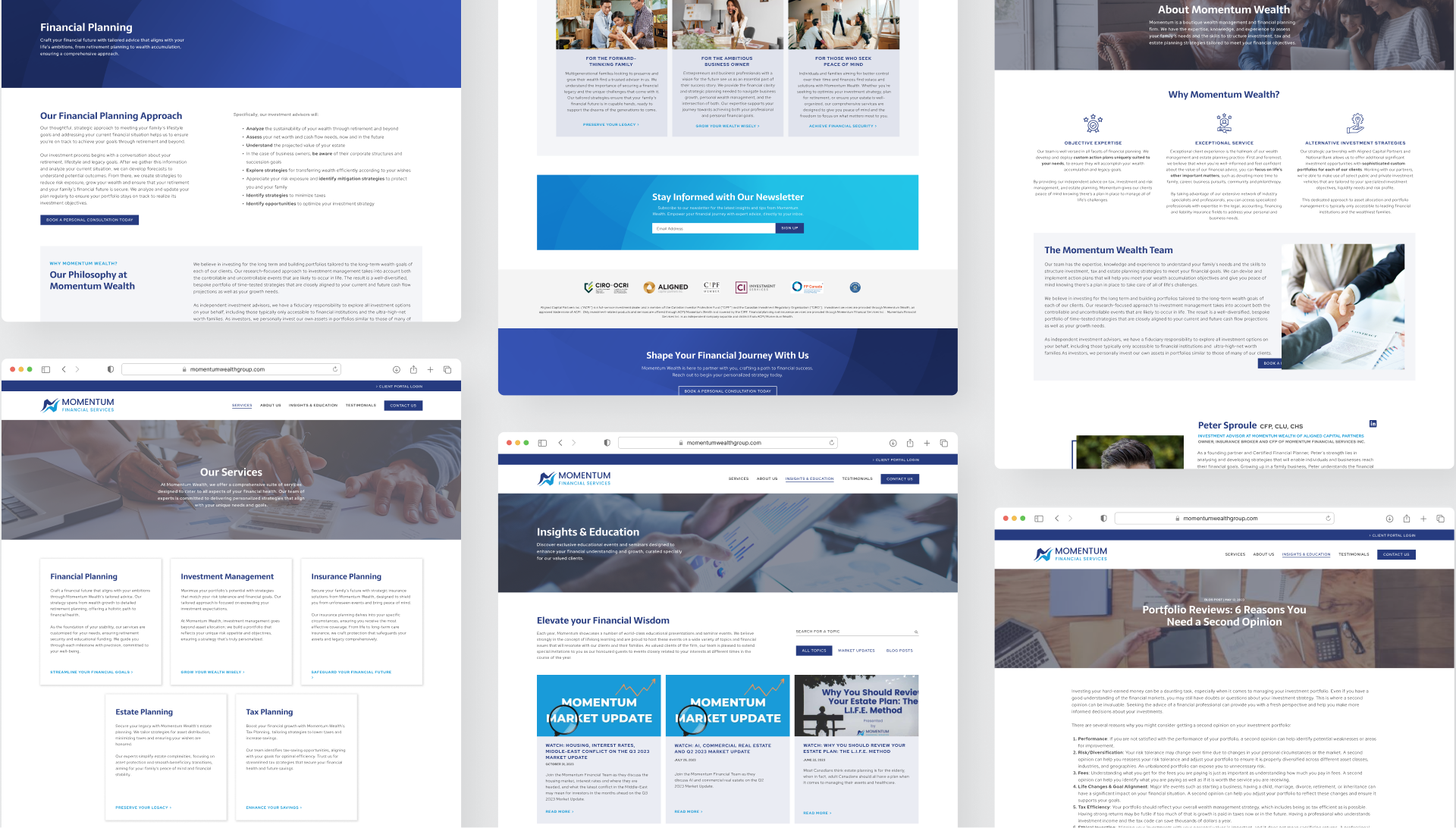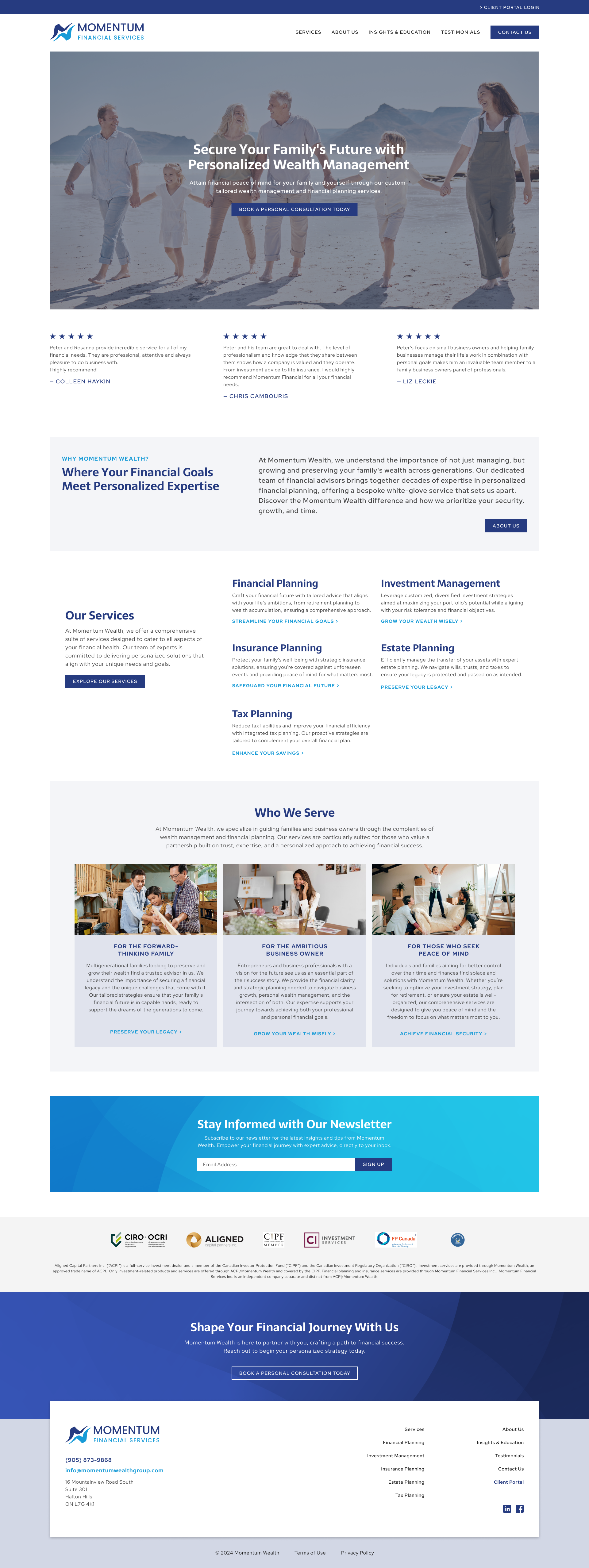 Momentum Wealth is a boutique wealth management firm serving families and business owners with long-term, personalized financial planning. This project focused on redesigning their website to increase online visibility, build trust and credibility, and support lead generation while maintaining a personalized, relationship-driven service.
